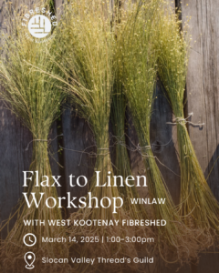 You’ll have the opportunity to try your hand at breaking, scutching, and hackling flax, learn about its cultivation and cultural history in the Kootenays, and explore how this plant fits into our regional fibre system today.