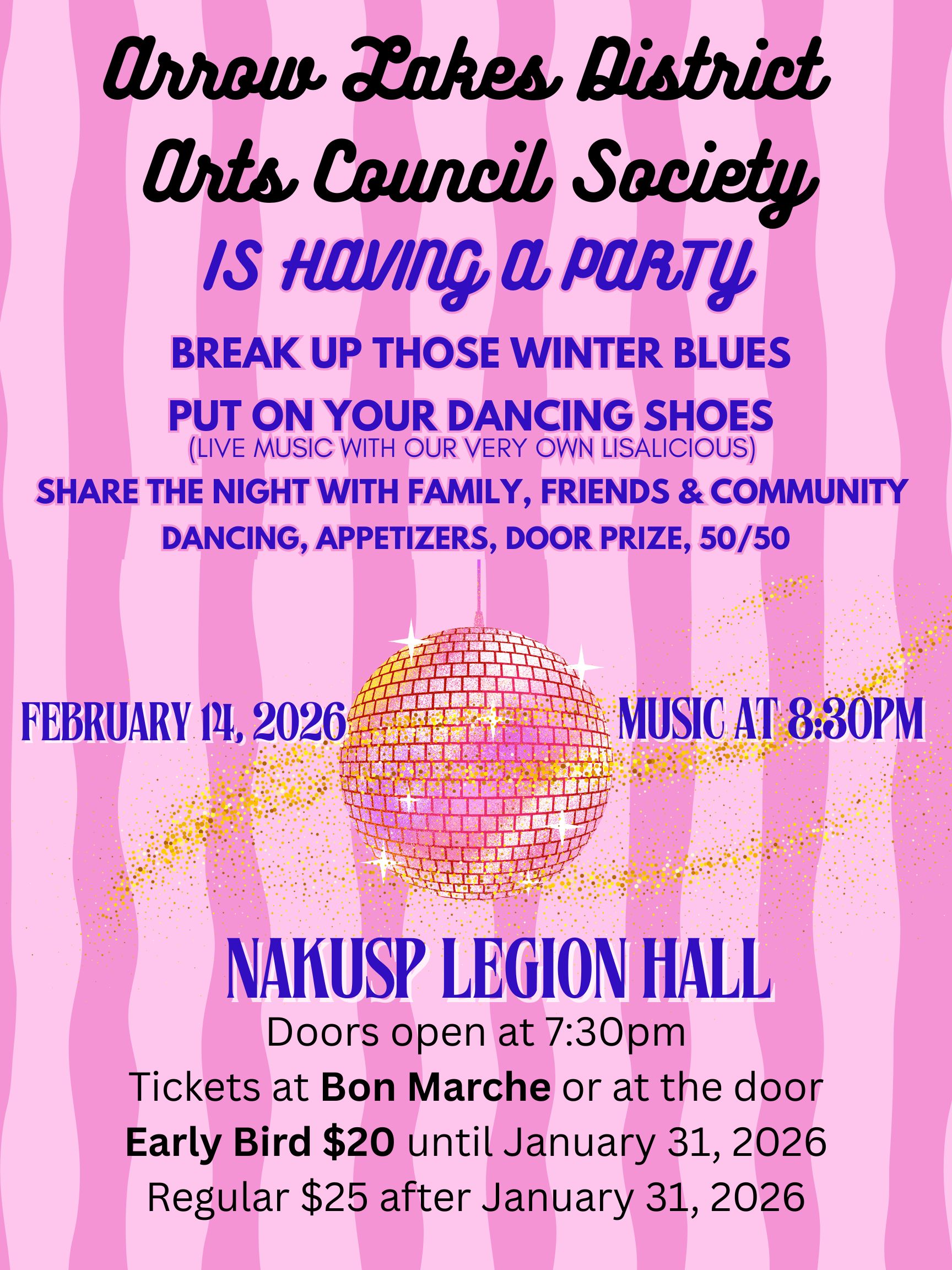 Dance party with the funk dance band Lisalicious this Saturday night! Arrow Lakes District Arts Council Society is Having a Party to break up the winter blues. Share the night […]