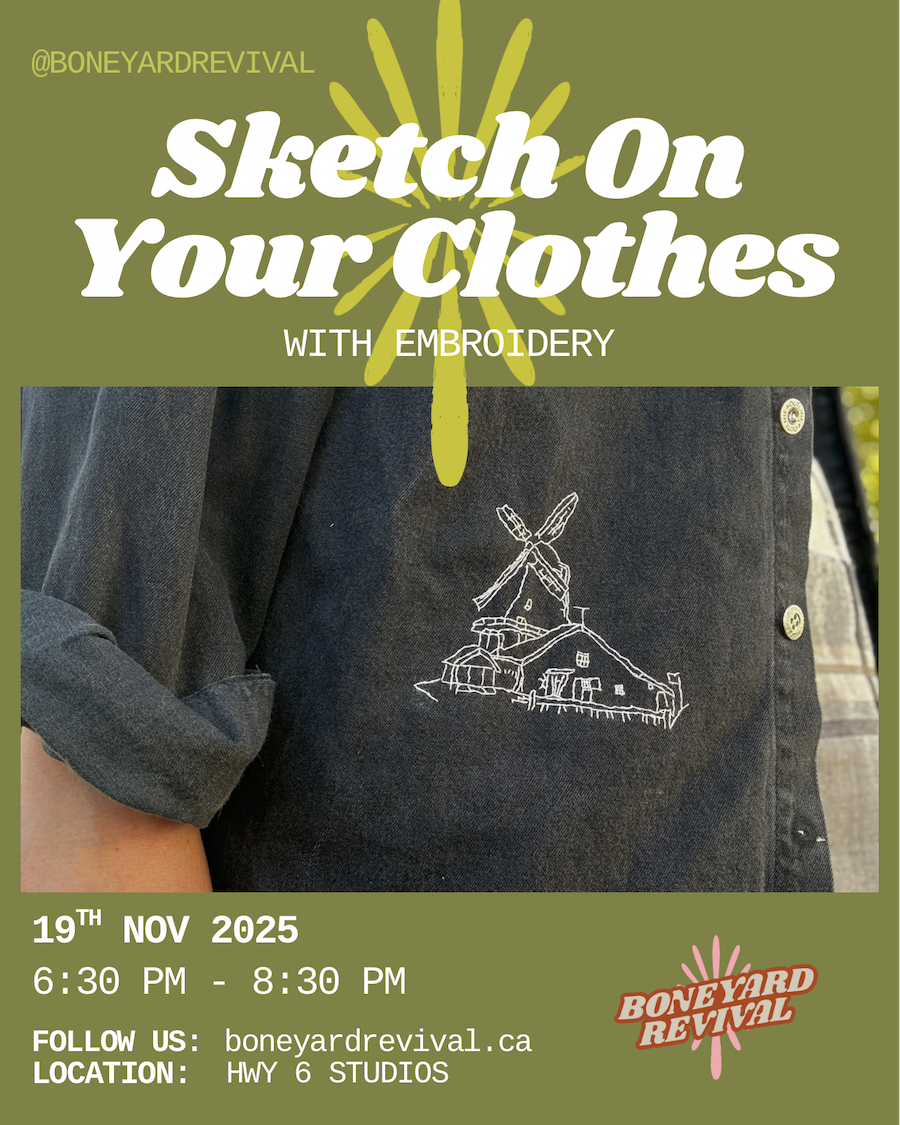 HWY 6 Studios, 3513 BC-6 unit 1, Nelson, BC V1L 6Z3Bored of your clothes or want to learn embroidery? Come to this workshop in an informal setting and learn to sketch on your clothes with needle and thread whilst meeting […]